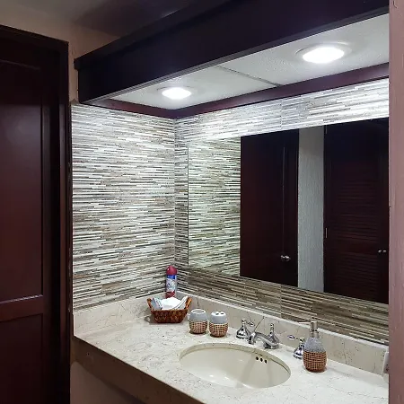 Quest'appartamento sul lungomare, Suite frente al Mar, è situato nel quartiere Puerto Juarez di Cancún, a circa 4 km dalla Chiesa di Cristo Rey, e si affaccia sulla spiaggia privata. Gli ospiti di quest'appartamento possono usufruire di un bancomat e servizio di cambio valuta.